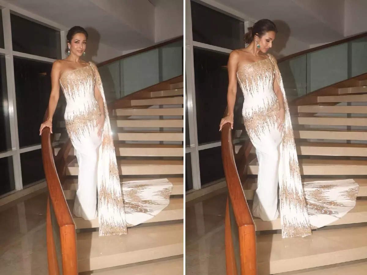 एक आस्तीन की ड्रेस में मलाइका अरोड़ा ने सीढ़ियों पर चढ़कर दिया ऐसा पोज, मिनटों में वायरल हो गईं हॉट मम्मी की फोटोज