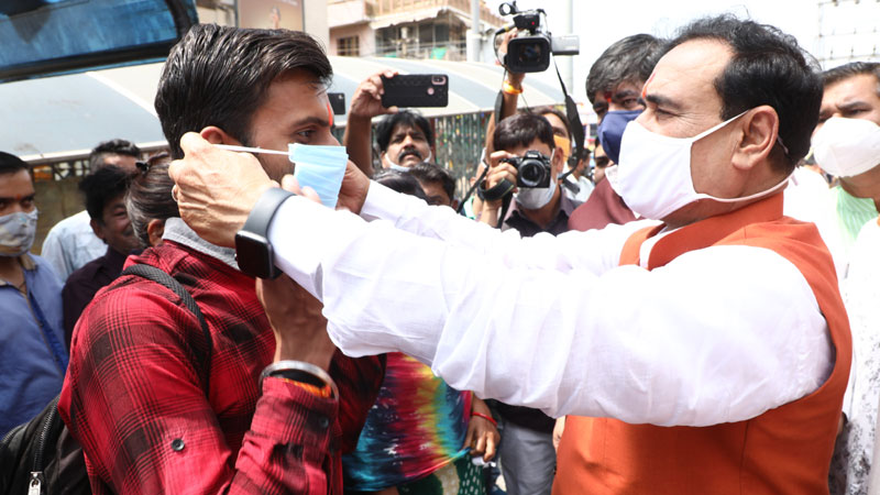 गृह मंत्री डॉ. नरोत्तम मिश्रा ने कहा है कि कोरोना संक्रमण के बीच अब भी मास्क नहीं पहनना सामाजिक अपराध है। उन्होंने प्रदेश स्तर पर प्रारंभ किये गये ‘ मेरा मास्क-मेरी सुरक्षा” अभियान के तहत न्यू मार्केट, भोपाल में लोगों में जागरूकता के प्रचार-प्रसार के लिये गोले बनाये, बगैर मास्क लगाये लोगों को मास्क लगाकर कोरोना गाइड-लाइन के अनुसार सुरक्षित उपाय अपनाने की सलाह दी। डॉ. मिश्रा ने कहा कि पुलिस विभाग भी कोरोना के प्रति जागरूकता के प्रचार-प्रसार के लिये अभिनव पहल करने जा रहा है। अभी तक पुलिस कोरोना को रोकने के लिए मास्क न पहनने वालों को जुर्माना या सजा देने जैसे काम कर रही थी, लेकिन अब एक अभिनव पहल करते हुए गृह मंत्री डॉ. नरोत्तम मिश्रा ने कहा है कि गांधीवादी तरीके से मास्क नहीं पहनने वाले व्यक्तियों का एक संदेश के साथ फोटो सोशल मीडिया पर अपलोड किया जाएगा, जिससे कि अन्य लोगों को मास्क पहनने की प्रेरणा मिल सके।