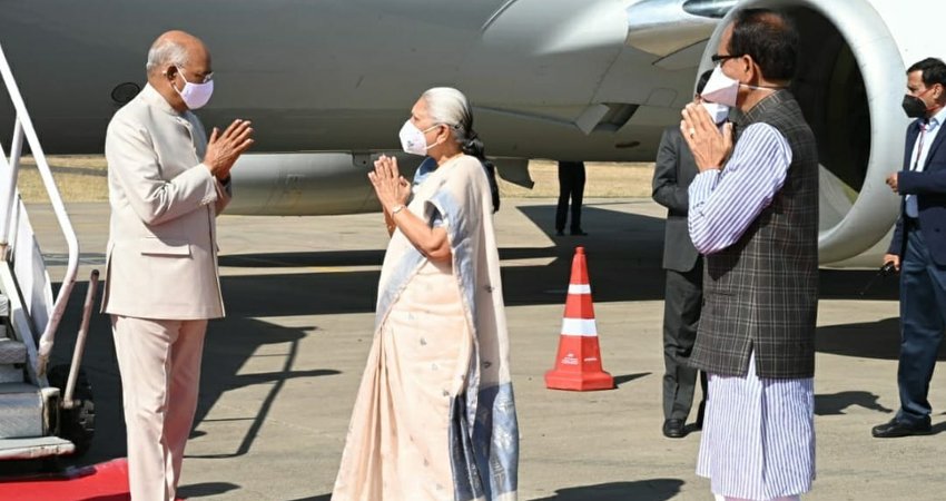 राष्ट्रपति श्री रामनाथ कोविन्द का जबलपुर पहुँचने पर आत्मीय स्वागत