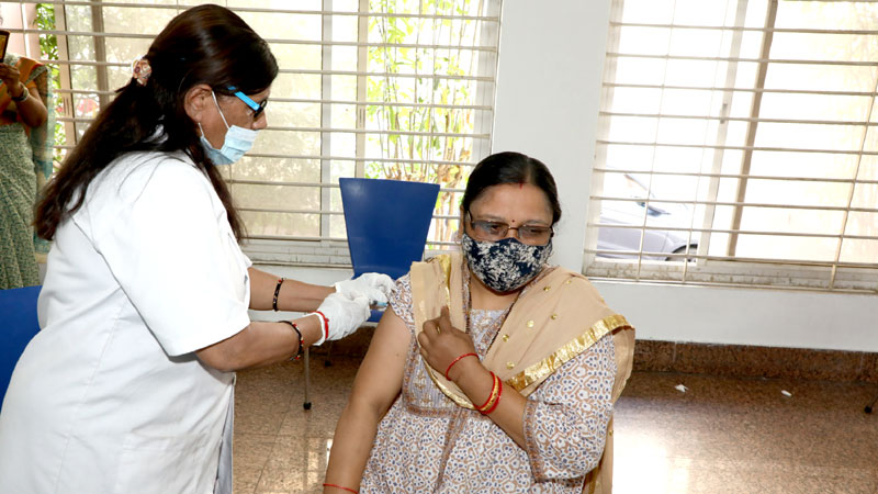 लोक निर्माण मंत्री श्री गोपाल भार्गव के निर्देश पर लोक निर्माण विभाग के अधिकारी-कर्मचारियों के लिये कोविड वैक्सीनेशन का विशेष शिविर निर्माण भवन परिसर में आयोजित किया गया।