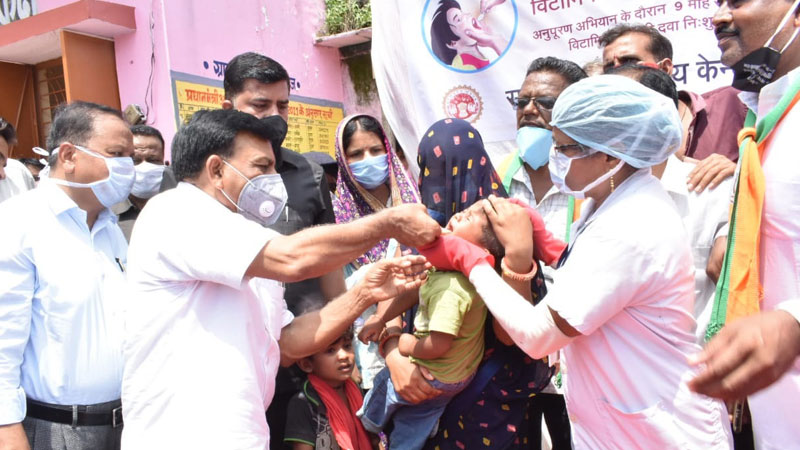 वित्त, वाणिज्यिक कर, योजना एवं आर्थिक सांख्यिकी मंत्री श्री जगदीश देवड़ा ने मदसौर जिले के मल्हारगढ़ तहसील के गांव बोतलगंज में विटामिन ‘ए’ अनुपूरण अभियान का शुभारंभ बच्चे को विटामिन ‘ए’ की दवा पिलाकर किया। प्रान्तव्यापी अनुपूरण अभियान के दौरान 9 माह से 5 वर्ष तक के बच्चों को विटामिन ‘ए’ की दवा निशुल्क पिलाई जाएगी।