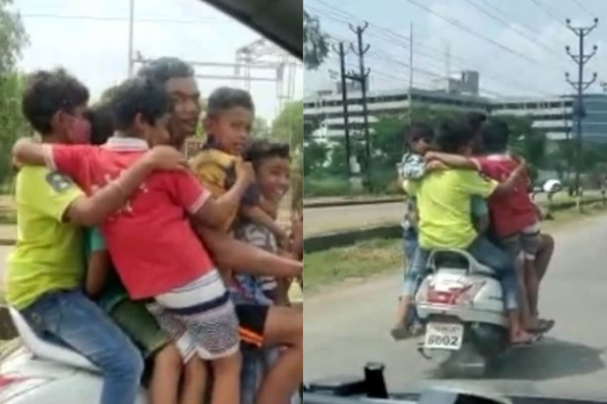 रायपुर. छत्तीसगढ़ की राजधानी रायपुर (Raipur) में जानलेवा स्टंट का एक वीडियो वायरल (Video Viral) हो रहा है. इस वायरल वीडियो में एक स्कूटी पर सात लोग जान जोखिम में डालकर सफर कर रहे हैं. जानलेवा स्टंट (Dangerous Stunt) करने वाले इन सभी को यह एहसास नहीं कि ऐसा कर यह कितना बड़ा खतरा मोल ले रहे हैं. जरा सी चूक भी इनके जीवन पर भारी पड़ सकती है. मगर अब इस मामले में एक युवक और उसके पिता के खिलाफ यातायात अधिनियम के तहत कार्रवाई की गई है. स्कूटी पर स्टंट का यह वीडियो वहां से गुजर रहे एक राहगीर ने अपनी कार के अंदर से बनाया है. वीडियो वायरल होने के बाद यातायात पुलिस (Traffic Police) ने वाहन को जब्त कर न्यायालय में पेश किया है.