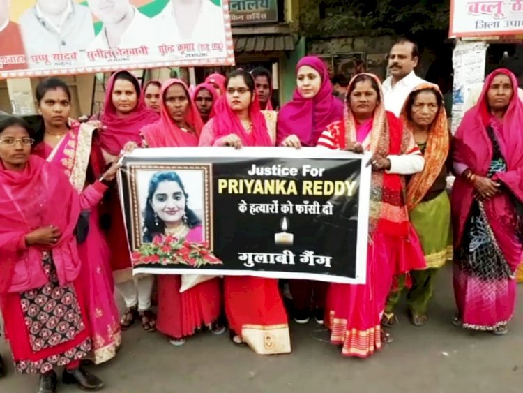 तेलंगाना के हैदराबाद में महिला चिकित्सक के साथ हुई हैवानियत व उसे जिंदा जला देने की घटना के विरोध में आज गुलाबी गैंग सड़कों पर उतर आयी। पूरे देश में इस घटना को लेकर सामाजिक संगठनों में गुस्सा है।