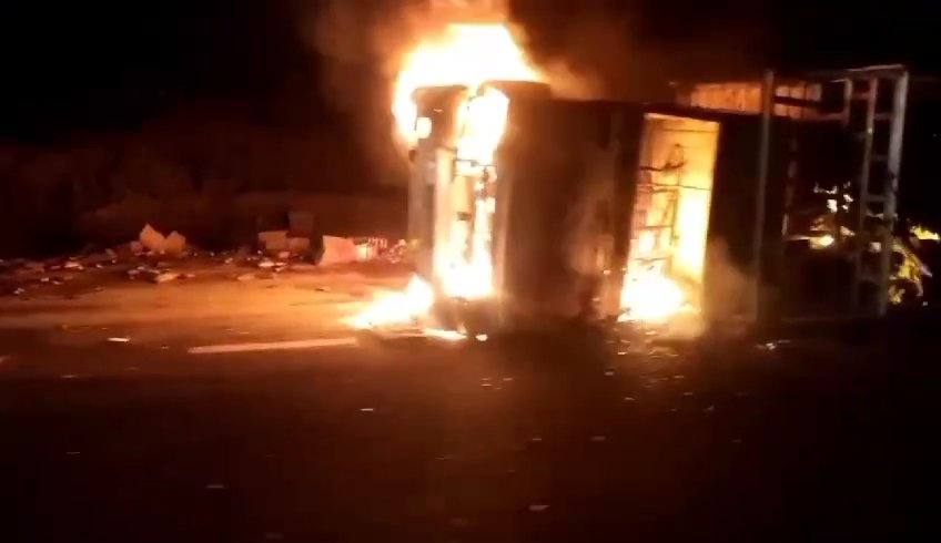 खण्डवा के रोशिया फाटे पर शराब परिवहन कर रहा पिक अप वाहन पलटने से वाहन में आग लग गई। जिससे वाहन में रखी शराब की बोतले एक एक कर फूटने लगी। अल्कोहल की वजह से आग तेजी से फैली। बावजूद इसके लोग मौके का फायदा उठाने से बाज नही आये। शराब वाहन पलटने से सड़क के आसपास बिखरी शराब की बोतल लोग उठाकर ले गए।