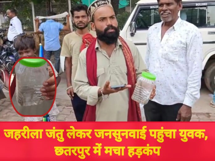 छतरपुर, मध्य प्रदेश: मंगलवार को छतरपुर जिला जनसुनवाई में उस समय हड़कंप मच गया, जब शहर की देरी रोड स्थित बीड़ी कॉलोनी निवासी एक युवक शिकायत लेकर पहुंचा। युवक के हाथ में एक जहरीला जंतु था, जिसे देखकर अधिकारी और वहां मौजूद लोग हैरान रह गए।