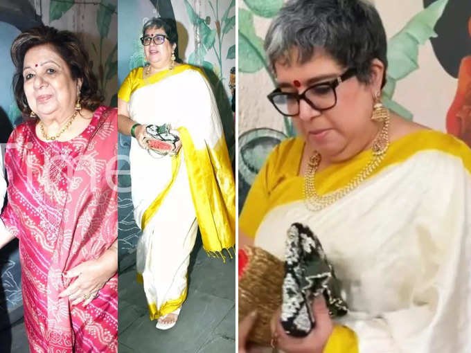 सबसे पहले रीना दत्ता की बात करें, तो उन्होंने अपनी बेटी की सगाई में सिल्क की बेहद खूबसूरत साड़ी पहनी थी, जिसका कलर-कॉम्बिनेशन उन पर काफी ज्यादा फब रहा था। ऑउटफिट का बेस कलर ऑफ वाइट रखा था, जिसमें मस्टर्ड येलो कलर की पट्टी दी गई थी। साड़ी में किसी तरह की कोई एम्ब्रोइडरी नहीं की थी बल्कि कंट्रास्ट क्रिएट करता इसका येलो ब्लाउज ओवरऑल लुक के स्टाइल कोशंट को बढ़ा रहा था।