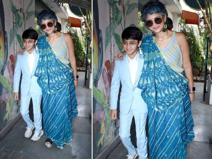 वहीं सौतेली बेटी की सगाई में अपनी स्पेशल अपीयरेंस दर्ज कराने के लिए किरण राव ने भी खुद को इंडियन आउटफिट्स में स्टाइल किया था, जिसमें ग्लैमर और ट्रेडिशनल का परफेक्ट मिक्स देखा जा सकता था। किरण राव ने इस दौरान ब्लू कलर की साड़ी पहनी थी, जिसे बनाने में जामदानी कपड़े का इस्तेमाल किया गया था।