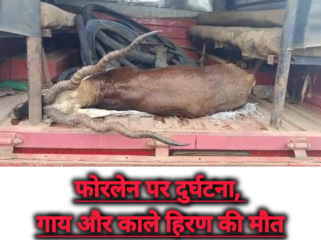 फोरलेन पर दुर्घटना, गाय और काले हिरण की मौत