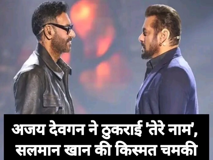 अजय देवगन ने अपने करियर में भले ही कई सफल फिल्में दी हों, लेकिन एक ऐसी फिल्म थी जिसे उन्होंने ठुकरा दिया और वही फिल्म सलमान खान के करियर के लिए मील का पत्थर साबित हुई। यह फिल्म थी ‘तेरे नाम’।रिपोर्ट्स के अनुसार, ‘तेरे नाम’ का ऑफर पहले अजय देवगन को दिया गया था,