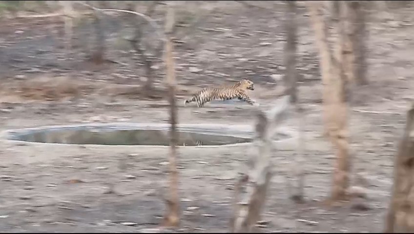 देश दुनिया में बाघों की बढ़ती हुई संख्या के लिए सीसी विश्व विख्यात मध्यप्रदेश के पन्ना टाइगर रिजर्व से एक और रोमांचित करने वाला वीडियो सामने आया है। बतादें की पन्ना टाइगर रिजर्व में मडला गेट से अंदर जाते ही पर्यटकों भी इस नजारे को देख आश्चर्य चकित रह गए और डर और रोमांच के बीच इस वीडियो को अपने कैमरे में कैद कर लिया। वीडियो में देखा जा सकता है की वनराज को देख कर एक तेंदुआ अपनी जान बचाने के लिए 20 फिट ऊंचे पेड़ पर चढ़ गया और जब तक वनराज वहा से चले नही गए तब तक पेड़ पर ही चढ़ा रहा जब वनराज वहा से चले गए तो तेंदुआ पलक झपकते ही पेड़ से उतर कर भाग गया यह नजारा देख पर्यटक भी हैरान रह गए। बतादें कि वर्ष 2008 में पन्ना टाइगर रिजर्व बाग विहीन हो चुका था जिसके बाद यहां पर बाघ पुनर्स्थापना कार्यक्रम शुरू किया गया और वर्तमान में एक सैकड़ा से भी अधिक बाघ पन्ना टाइगर रिजर्व में स्वच्छंद विचरण कर रहे हैं यही कारण है कि यहां देश के कोने-कोने के साथ-साथ विदेशो से भी लोग पन्ना टाइगर रिजर्व घूमने आ रहे हैं और बाघों की अटखिलिया देखकर रोमांचित हो रहे हैं। वही अब प्रतिदिन ही पन्ना टाइगर रिजर्व से रोमांचित करने वाले वीडियो सामने आ रहे है।देश दुनिया में बाघों की बढ़ती हुई संख्या के लिए सीसी विश्व विख्यात मध्यप्रदेश के पन्ना टाइगर रिजर्व से एक और रोमांचित करने वाला वीडियो सामने आया है। बतादें की पन्ना टाइगर रिजर्व में मडला गेट से अंदर जाते ही पर्यटकों भी इस नजारे को देख आश्चर्य चकित रह गए और डर और रोमांच के बीच इस वीडियो को अपने कैमरे में कैद कर लिया। वीडियो में देखा जा सकता है की वनराज को देख कर एक तेंदुआ अपनी जान बचाने के लिए 20 फिट ऊंचे पेड़ पर चढ़ गया और जब तक वनराज वहा से चले नही गए तब तक पेड़ पर ही चढ़ा रहा जब वनराज वहा से चले गए तो तेंदुआ पलक झपकते ही पेड़ से उतर कर भाग गया यह नजारा देख पर्यटक भी हैरान रह गए। बतादें कि वर्ष 2008 में पन्ना टाइगर रिजर्व बाग विहीन हो चुका था जिसके बाद यहां पर बाघ पुनर्स्थापना कार्यक्रम शुरू किया गया और वर्तमान में एक सैकड़ा से भी अधिक बाघ पन्ना टाइगर रिजर्व में स्वच्छंद विचरण कर रहे हैं यही कारण है कि यहां देश के कोने-कोने के साथ-साथ विदेशो से भी लोग पन्ना टाइगर रिजर्व घूमने आ रहे हैं और बाघों की अटखिलिया देखकर रोमांचित हो रहे हैं। वही अब प्रतिदिन ही पन्ना टाइगर रिजर्व से रोमांचित करने वाले वीडियो सामने आ रहे है।