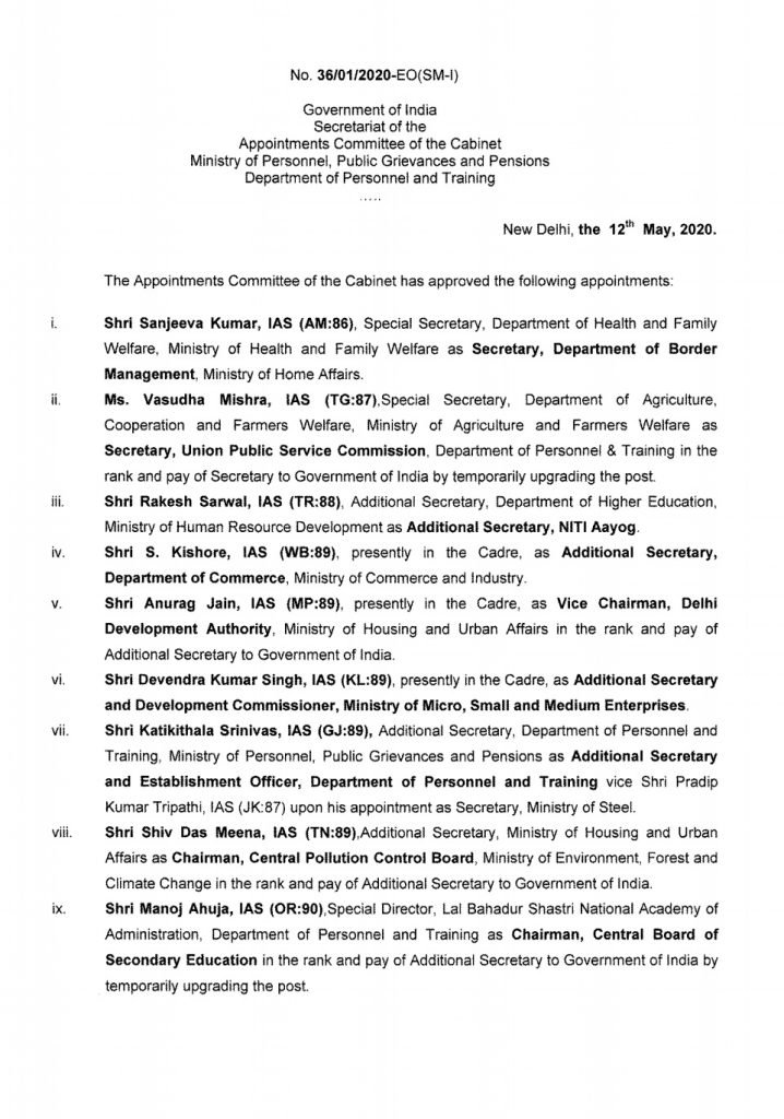 सचिव स्तर के आईएएस अफसरों के बदले विभाग