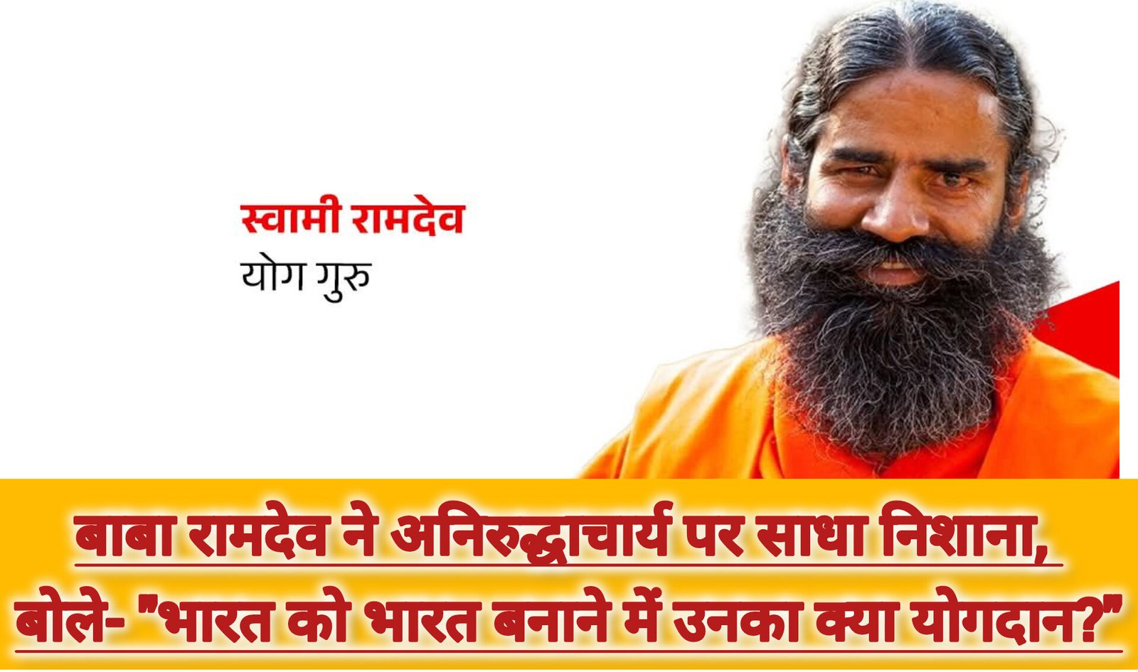 बाबा रामदेव ने कथावाचक अनिरुद्धाचार्य के विवादित बयानों को लेकर उन पर तीखा प्रहार किया है। एक कार्यक्रम के दौरान, बिना नाम लिए, बाबा रामदेव ने कहा कि सच्चा सनातन धर्म का गुरु या संन्यासी वही है जिसने देश के विकास के लिए इंडस्ट्री, हेल्थ, या एजुकेशन जैसे क्षेत्रों में कुछ ठोस योगदान दिया है। उन्होंने सवाल उठाया कि “भारत को भारत बनाने में उनका क्या योगदान है?”
