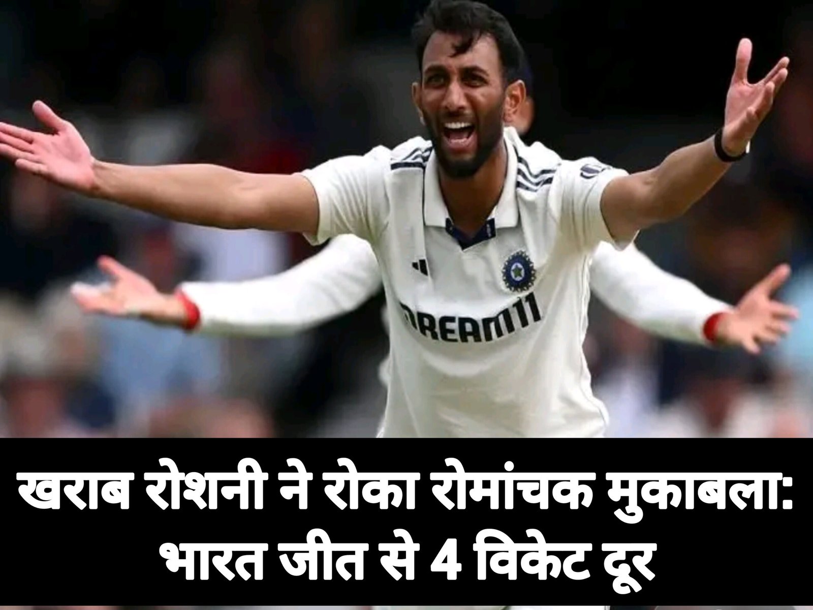 दिन के खेल में, भारत ने दो अहम विकेट लेकर मैच में शानदार वापसी की। हैरी ब्रूक और जो रूट को आउट कर भारतीय गेंदबाजों ने अपनी टीम के लिए उम्मीदें जगाईं। अब यह मैच किसी भी तरफ जा सकता है, जिससे सीरीज का परिणाम तय होगा। अगर आज भारत जीतता है, तो सीरीज 2-2 से ड्रॉ हो जाएगी।