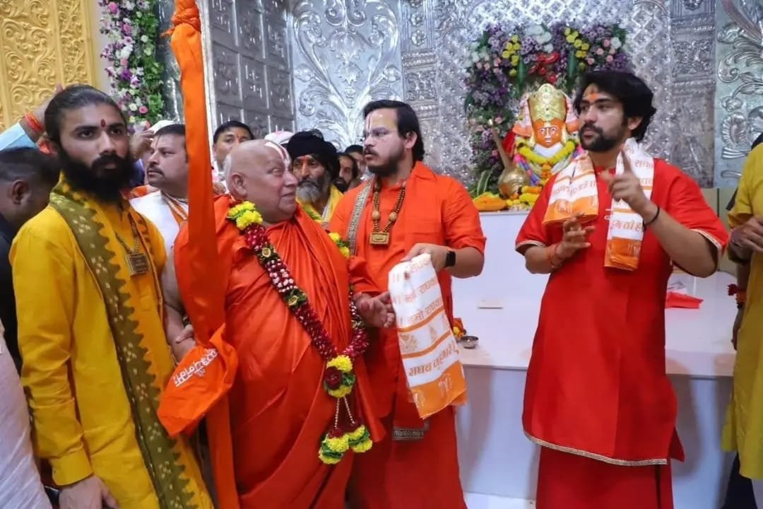 तुलसी पीठाधीश्वर ने भेंट किया मुगदर 4 क्विंटल चांदी से बना छत्र।