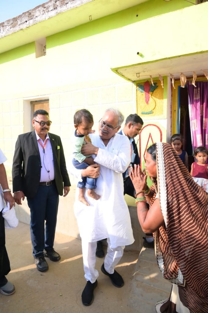 रायपुर, ब्यूरो। मुख्यमंत्री श्री भूपेश बघेल भेंट मुलाकात कार्यक्रम के दौरान आम जनता से सीधा संवाद कर ना केवल उनकी समस्याओ का निराकरण कर रहे, बल्कि छत्तीसगढ़िया संस्कृति, खानपान और जीवनशैली को भी बढ़ावा दे रहे हैं। मुख्यमंत्री श्री बघेल आज भोजन ग्रहण करने फिंगेश्वर में किसान श्री बिसेलाल साहू के घर पहुंचे। मुख्यमंत्री के घर पहुंचने पर श्री बिसेलाल के परिवार वालों के चेहरे पर खुशी साफ झलक रही थी।
