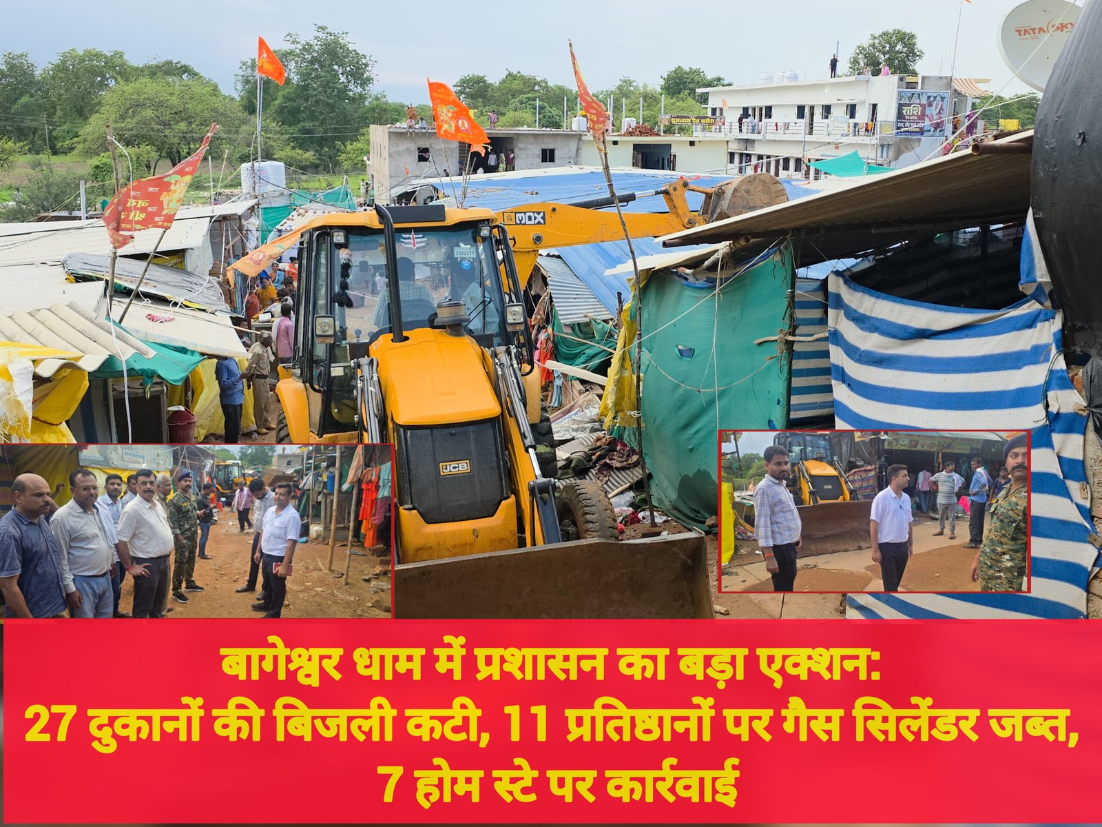 सुरक्षा मानकों का पालन न करने और शासकीय भूमि पर अवैध रूप से संचालित होने के कारण एक होम स्टे को सील किया गया, जबकि छह अन्य अवैध होम स्टे पर ध्वस्तीकरण की कार्रवाई की गई। अन्य गैर-मानक होम स्टे को हटाने की चेतावनी भी दी गई है। इसके अतिरिक्त, अवैध बिजली कनेक्शन पाए जाने पर 27 दुकानों और होम स्टे के बिजली कनेक्शन काट दिए गए।अधिकारियों ने बताया कि यह कार्रवाई निरंतर जारी रहेगी। इस दौरान एसडीओपी नवीन दुबे, तहसीलदार धीरज गौतम, खाद्य सुरक्षा अधिकारी वेद प्रकाश चौबे सहित राजस्व और पुलिस विभाग के संबंधित अधिकारी मौजूद रहे।
