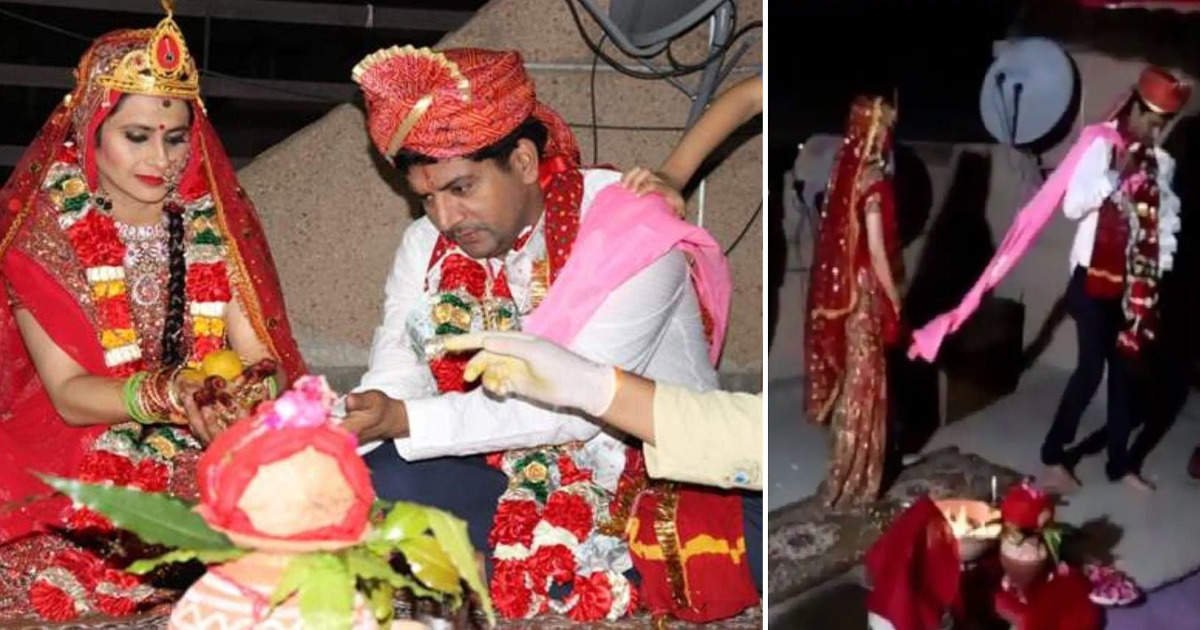 बात करें दूल्हे यानी आशुतोष की, तो उन्होंने शेरवानी की जगह सिंपल पैंट्स और शर्ट पहनी थी। उन्होंने इस खास पल के लिए ब्लू फॉर्मल पैंट्स और ऊपर फुल स्लीव्स की वाइट शर्ट पहनी थी। गले में वह लाल बंधेज प्रिंट का दुपट्टा और सिर पर साइज से छोटी पगड़ी लगाए हुए थे। इससे लग रहा था कि शायद पगड़ी तक की उन्होंने कहीं से जुगाड़ ही की है।