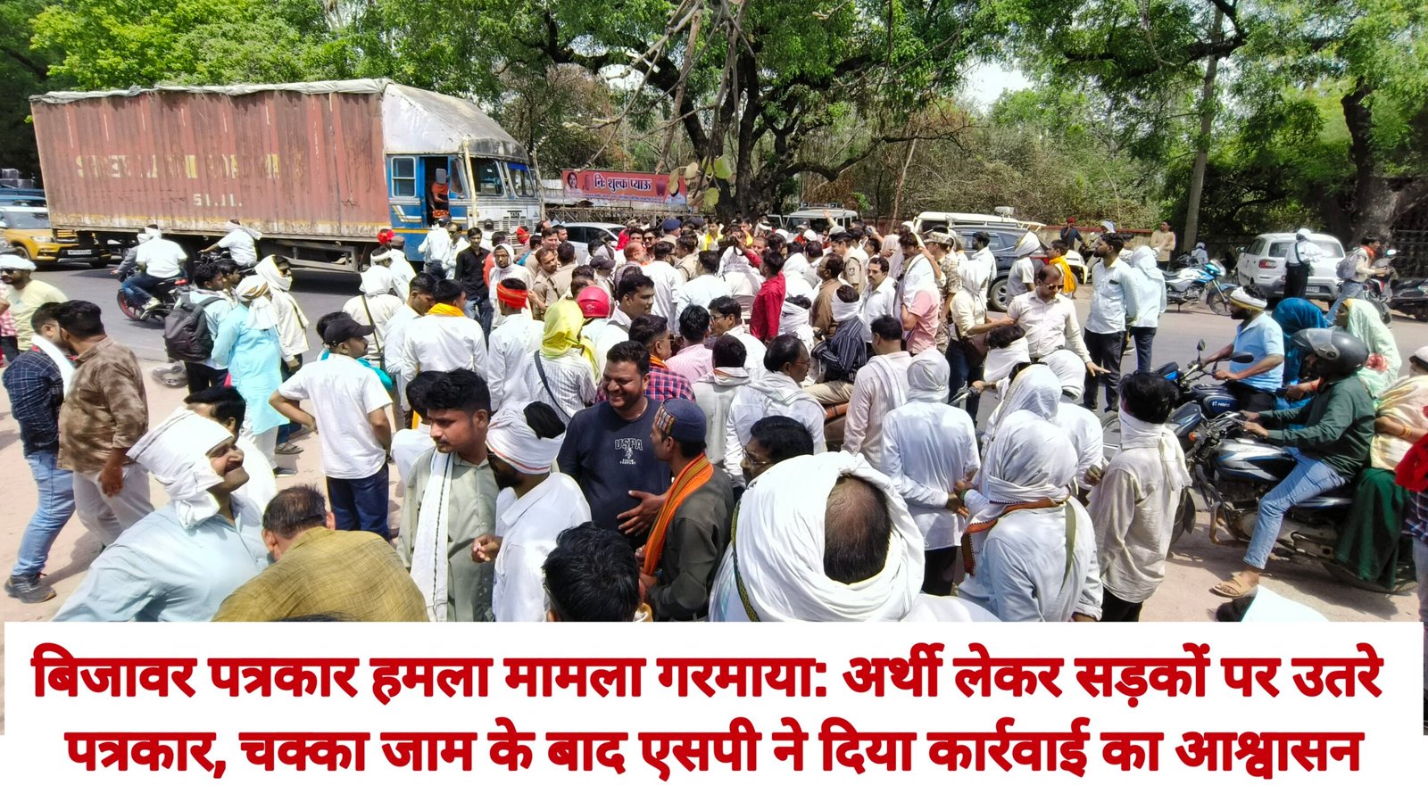 उनका आरोप है कि शराब ठेकेदारों और पुलिस के बीच कथित मिलीभगत के कारण हमलावरों को बचाया जा रहा है, जबकि पीड़ित पत्रकार को ही झूठे मामले में फंसाने का प्रयास किया गया।इसके बाद पत्रकारों ने एसपी कार्यालय के बाहर सड़क पर बैठकर चक्का जाम कर दिया, जिससे यातायात प्रभावित हुआ।