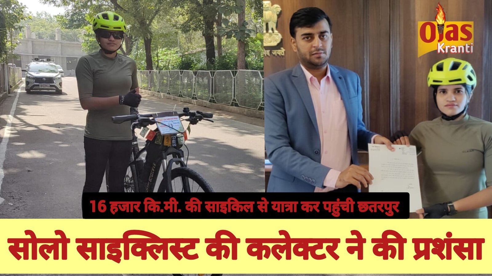 कलेक्टर ने सोलो साइक्लिस्ट की छतरपुर पहुंचने पर प्रशंसा की**आशा मालवीय ने कारगिल विजय दिवस से कन्याकुमारी से शुरू की थी अपनी यात्रा,महिला सशक्तिकरण एवं सुरक्षा का दे रहीं संदेश, युवाओं और महिलाओं के लिए बनी प्रेरणा**16 हजार कि.मी. की साइकिल से यात्रा पूरी कर छतरपुर पहुंची ——-