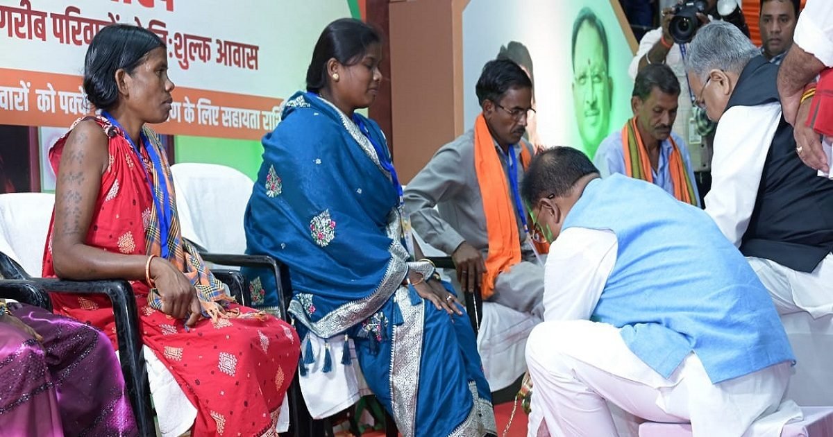 रायपुर. मुख्यमंत्री विष्णु देव साय ने मंगलवार को राजधानी रायपुर के सरदार बलबीर सिंह जुनेजा इंडोर स्टेडियम में आयोजित ‘मोर आवास मोर अधिकार’ कार्यक्रम में अपने प्रशासनिक और राजनीतिक जीवन का एक भावुक और अद्वितीय उदाहरण प्रस्तुत किया. मोर आवास मोर अधिकार कार्यक्रम के दौरान मुख्यमंत्री ने जनसेवा की नई मिसाल कायम करते हुए हितग्राहियों के पांव पखारकर उनका आशीर्वाद लिया. मुख्यमंत्री द्वारा किया गया यह कार्य मानवीय संदेश दिया है, जो जनप्रतिनिधियों और आम जनता के बीच विश्वास और सेवा का प्रतीक बन गया है.
