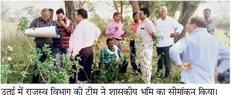 उतई में राजस्व विभाग की टीम ने शासकीय भूमि का सीमांकन किया।