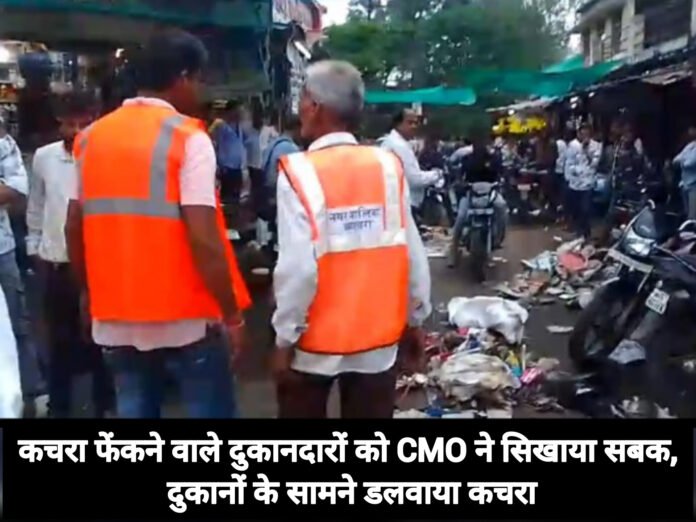 कचरा फेंकने वाले दुकानदारों को CMO ने सिखाया सबक, दुकानों के सामने डलवाया कचरा
