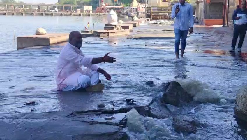 उज्जैन की मोक्षदायिनी क्षिप्रा नदी में एक बार फिर गन्दे नाले का पानी मिलता हुआ साफ दिखाई दे रहा है। यहां शिप्रा नदी के गंधर्व घाट पर गंदा नाला फूट गया । जिसकी वजह से सीवरेज का पानी सीधे तौर पर शिप्रा नदी में मिलता हुआ दिखाई दे रहा है। दरअसल यह पहली बार नहीं है कि यहां गंदे नाले का पानी शिप्रा नदी में मिल रहा है। ऐसी घटना कई बार हो चुकी है। बावजूद इसके प्रशासन द्वारा किसी प्रकार की कोई ठोस कार्रवाई नहीं की गई । खास बात तो यह है कि यहां गंदे नाले का पानी रात्रि से मिलना शुरू हुआ जो की आज सुबह तक भी जारी है। घटना की जानकारी लगते ही कांग्रेस विधायक व वर्तमान लोकसभा प्रत्याशी महेश परमार शिप्रा नदी पहुंचे और बहते हुए गंदे नाले के पानी के बीच बैठ गए। महेश परमार ने घटना पर विरोध जताया व केंद्र और प्रदेश सरकार के साथ ही जिला प्रशासन को आड़े हाथों लिया। इसके बाद उन्होंने शिप्रा नदी के अंदर डुबकी लगाई।यहां बता दे की जिला प्रशासन ने रात्रि में जनसंपर्क के माध्यम से प्रेस नोट जारी कर यह स्पष्टीकरण दिया है कि यह पानी गंदे नाले का नहीं है । पीने के पानी की पाइपलाइन फूटने के कारण अच्छा पानी बह रहा है।हालांकि मौके पर स्थित कुछ और ही बयां कर रही है। साफ तौर पर दिखाई दे रहा है कि सीवरेज और गन्दा पानी नाले से बह रहा है।