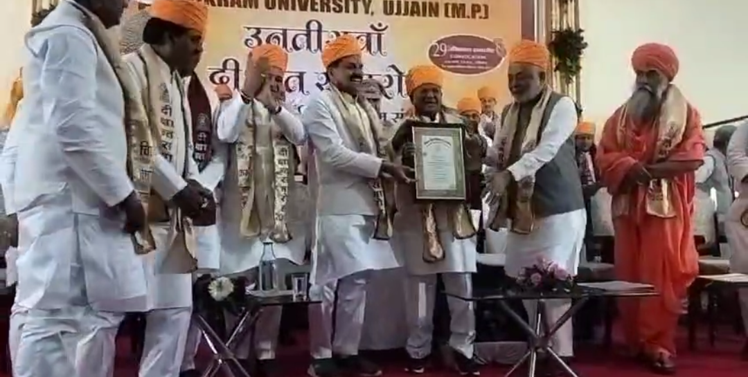 उज्जैन,मुख्यमंत्री ने की घोषणा, विक्रम विश्वविद्यालय का नाम अब सम्राट विक्रमादित्य विश्वविद्यालय होगा,विक्रम विश्वविद्यालय का आज 29वा दीक्षांत समारोह का आयोजन हुआ। यह आयोजन विक्रम विश्व विद्यालय के स्वर्ण जयंती हाल में हुआ। यहां मुख्य अतिथि के तौर पर केंद्रीय राज्य मंत्री डॉ अर्जुनराम मेघवाल, राज्यपाल मंगूभाई पटेल, मुख्यमन्त्री डॉ मोहन यादव, उच्च शिक्षा मंत्री इंदरसिंह परमार, राज्यसभा सदस्य संत उमेश नाथ महाराज और सांसद अनिल फिरोजिया मौजूद रहे। खास बात यह रही कि यहां मुख्यमन्त्री डॉ मोहन यादव और पद्मभूषण कमलेश डी पटेल को मानद डी.लिट् उपाधि से अलंकृत किया ।
