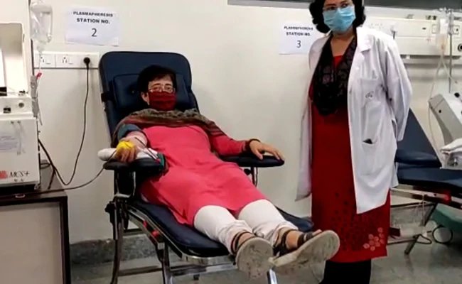 दिल्ली में आम आदमी पार्टी की विधायक आतिशी ने प्लाज्मा दान किया.