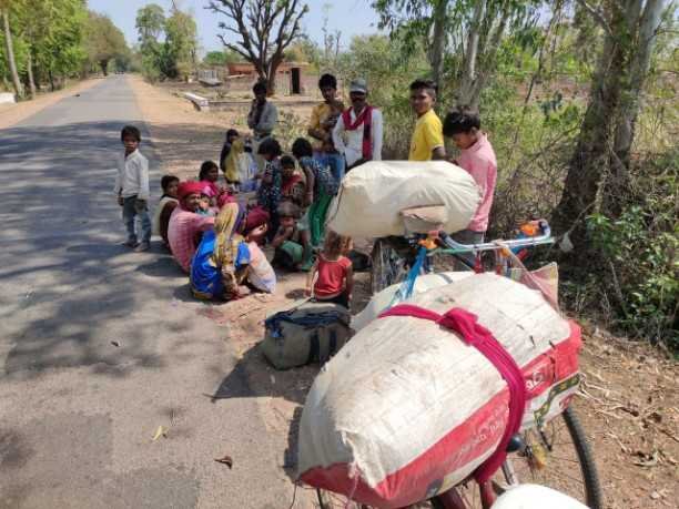 गांव जाने के लिए बैठे ग्राम नगवास के निवासी