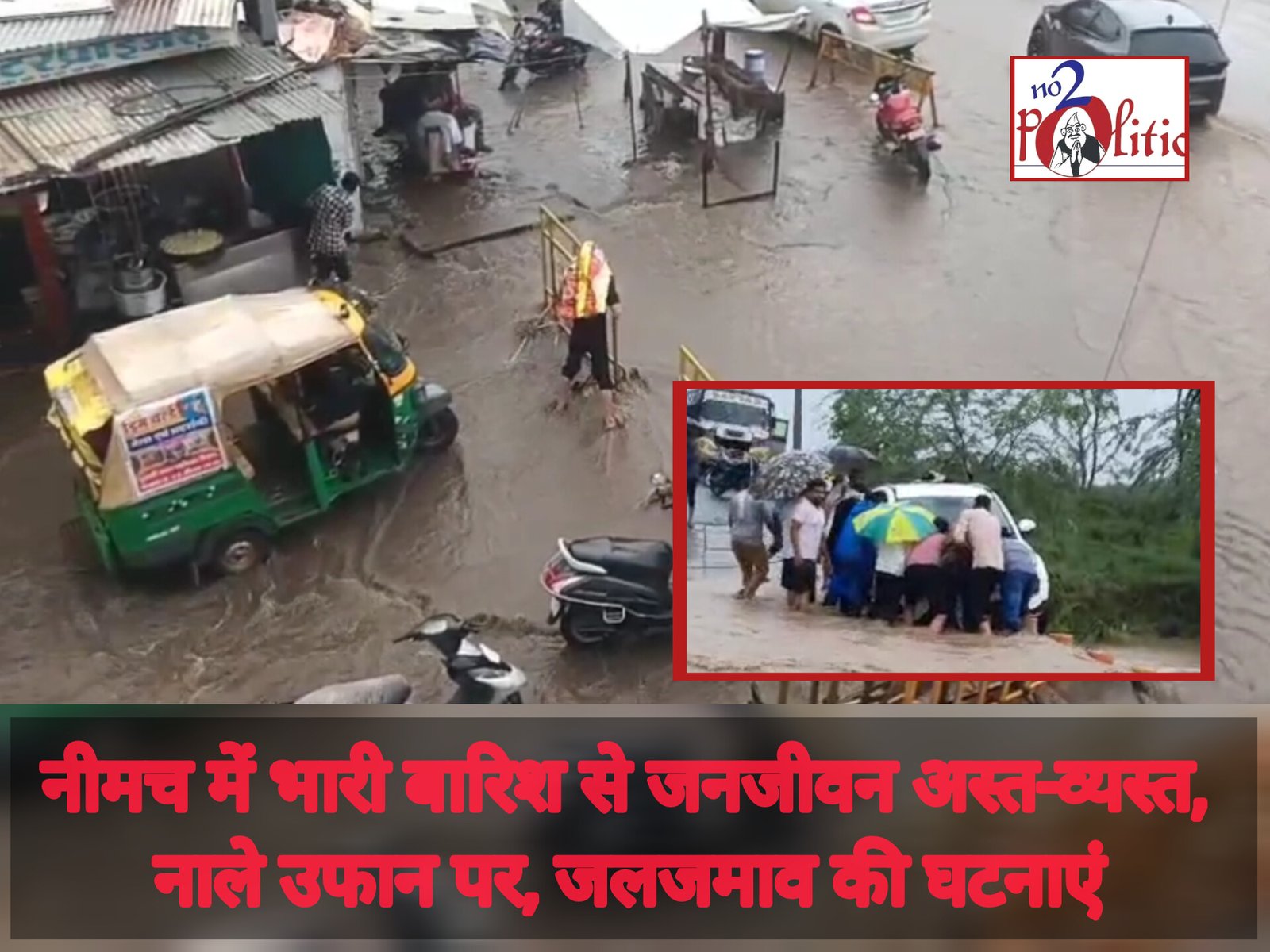 नीमच। नीमच जिले में बुधवार रात से जारी मूसलाधार बारिश का दौर लगातार जारी है, जिससे जनजीवन बुरी तरह प्रभावित हुआ है। लगातार हो रही तेज बारिश के कारण छोटे-बड़े सभी नदी-नाले उफान पर हैं, और कई स्थानों पर जलजमाव की स्थिति निर्मित हो गई है।