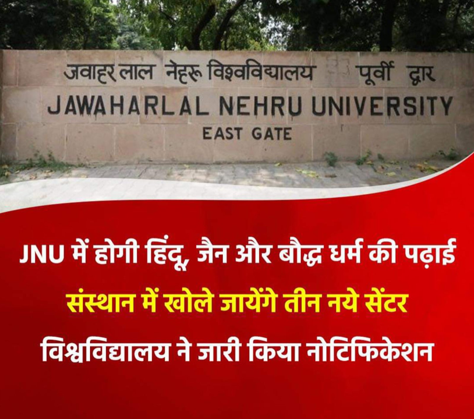 जवाहरलाल नेहरू यूनिवर्सिटी में शुरू होगा हिंदू, बौद्ध और जैन का स्टडी सेंटर, जारी हुआ आदेश।JNU में 2025-26 सत्र से तीन नए हिंदू बौद्ध और जैन अध्ययन केंद्रों की शुरुआत होगी।विश्वविद्यालय ने इसका आदेश जारी कर दिया है।मई में हुई।Academic Council Meeting में इस पर मुहर लग गई थी।तीनों अध्ययन केंद्र से विद्यार्थी PG की डिग्री और PhD कर सकेंगे।इनमें एडमिशन कॉमन यूनिवर्सिटी एंट्रेंस टेस्ट यानी CUET के जरिये होंगे।