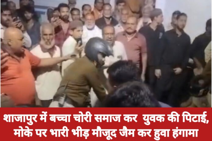 शाजापुर में बच्चा चोरी समाज कर युवक की पिटाई,मोके पर भारी भीड़ मौजूद जैम कर हुवा हंगामा