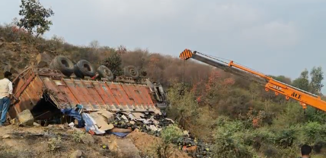 सोहागी पहाड़ में, पलटा तरबूजों से लदा ट्रक, एक की हुई मौत एक हुआ घायल