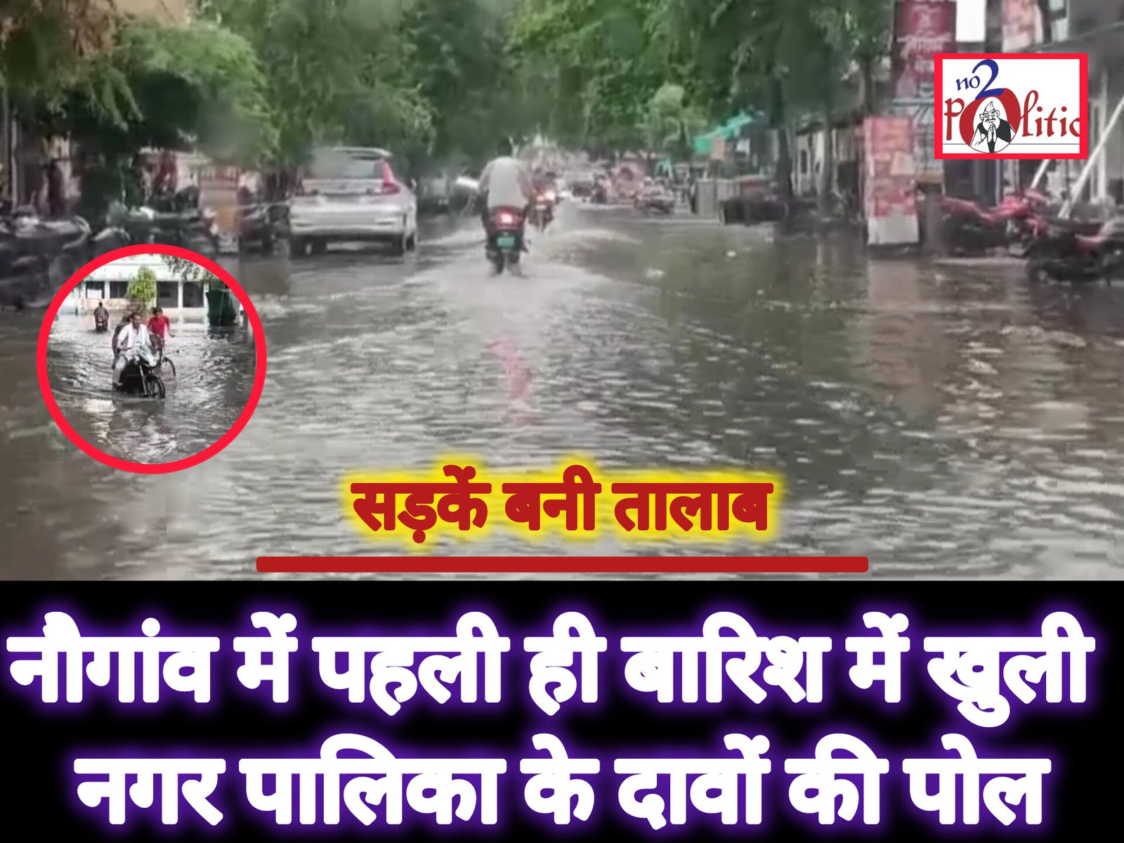 छतरपुर। मॉनसून की पहली बारिश ने ही नौगांव नगर पालिका के इंतज़ामों की पोल खोल दी है। कुछ ही देर की बारिश में शहर की सड़कें लबालब भर गईं और उन पर बाढ़ जैसी स्थिति निर्मित हो गई। नौगांव अस्पताल के गेट पर भी पानी भर गया, जिससे लोगों को जान जोखिम में डालकर सड़क पार करनी पड़ी।