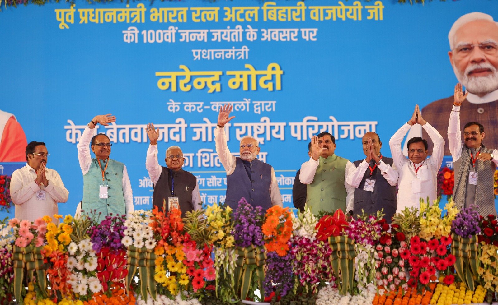 ***मध्यप्रदेश देश का पहला राज्य जहां नदियों को जोड़ने के अभियान की हुई शुरूआत**विकसित भारत के लिए विकसित मध्यप्रदेश बनाने में बुंदेलखंड का होगा अहम रोल**आने वाले सालों में म.प्र. देश की टॉप इकोनामी में से होगा एक**मोहन सरकार ने एक वर्ष में मध्यप्रदेश के विकास को दी नई गति**पूर्व की सरकारों ने बुंदेलखंड में सूखे की समस्या को दूर करने कोई स्थाई समाधान नहीं खोजा**मध्यप्रदेश से निकली माँ नर्मदा के आशीर्वाद ने गुजरात का बदल दिया भाग्य**केन-बेतवा लिंक परियोजना अटल जी के विजन का है परिणाम**पूर्व प्रधानमंत्री स्व. अटल जी की जयंती सुशासन और हमारी सुप्रेरणा का दिन**मध्यप्रदेश दुनिया के टॉप-10 टूरिज्म डेस्टिनेशन में से एक अटल जी की स्मृति में डाक टिकट और स्मारक सिक्का जारी किया**मध्यप्रदेश में 1153 अटल ग्राम सेवा सदनों का भूमि-पूजन**प्रधानमंत्री श्री मोदी ने ओंकारेश्वर फ्लोटिंग सौर परियोजना का किया लोकार्पण**प्रधानमंत्री श्री मोदी ने अटल जी की 100वीं जयंती पर देश की पहली केन-बेतवा राष्ट्रीय परियोजना का किया शिलान्यास**प्रधानमंत्री श्री मोदी मध्यप्रदेश के लिए आधुनिक भगीरथ : मुख्यमंत्री डॉ. यादव**प्रधानमंत्री श्री मोदी ने सुशासन के साथ लोकतंत्र को भी किया पुष्पित-पल्लवित*——–प्रधानमंत्री नरेन्द्र मोदी ने कहा है कि पिछले 1 वर्ष में मध्यप्रदेश में विकास कार्यों को नई गति मिली है। आज मध्यप्रदेश में हजारों करोड़ की विकास परियोजनाओं की शुरुआत हुई है। भूतपूर्व प्रधानमंत्री स्व. अटल बिहारी वाजपेई के सपने को साकार करती हुई देश की पहली नदी जोड़ी परियोजना केन-बेतवा का आज यहाँ शिलान्यास हुआ है। इसके साथ ही देश के पहले फ्लोटिंग सोलर पॉवर प्रोजेक्ट, ओंकारेश्वर का भी शिलान्यास हुआ है। इसके लिए मध्यप्रदेश के कर्मठ मुख्यमंत्री डॉ. मोहन यादव की सरकार और यहां की जनता को बहुत-बहुत बधाई और शुभकामनाएं।प्रधानमंत्री श्री मोदी ने अपने संबोधन की शुरूआत बुंदेलखंडी बोली में करते हुए कहा, वीरों की धरती ई बुंदेलखंड पे रहबे बारे सबई जनन खों हमाई तरफ से हाथ जोड़के राम-राम पौंचे। प्रधानमंत्री श्री मोदी ने कहा कि देश के विकास में अटल जी का योगदान सदैव याद रखा जाएगा। वे सुशासन के प्रतीक थे। आज उनकी जन्म शताब्दी के अवसर पर उनकी स्मृति में मध्यप्रदेश में 1153 अटल ग्राम सेवा सदन का निर्माण प्रारंभ हो रहा है, जिसकी पहली किश्त भी जारी की गई है। सुशासन हमारी सरकार की पहचान है। हमारे लिए जनहित, जनकल्याण और विकास सर्वोपरि है। हम जन सामान्य के लिए समर्पित हैं। आजादी के दीवानों ने देश के लिए अपना लहू बहाया था, हम उनके सपनों को पूरा करने के लिए पसीना बहाते हैं। अच्छी योजनाओं के साथ ही उन्हें लागू करना और उनका लाभ 100% लाभार्थी तक पहुंचा