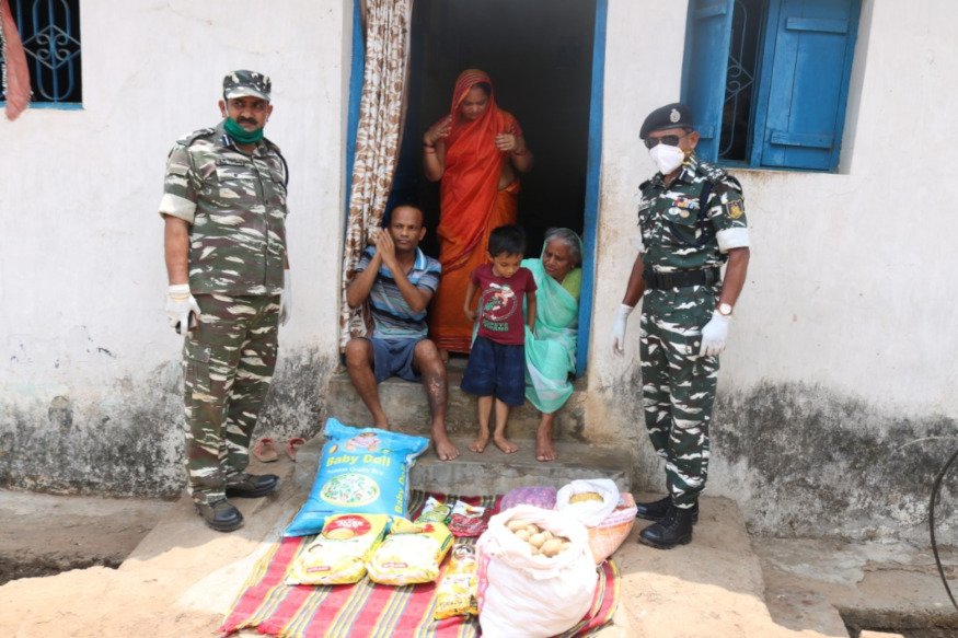 सीआरपीएफ की टीम ने राशन पहुंचाया.