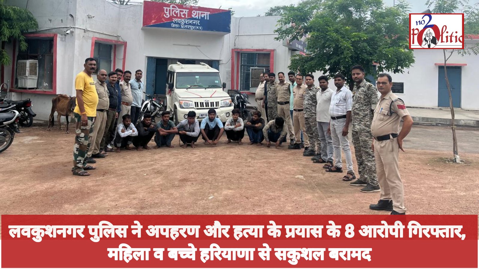 छतरपुर, मध्य प्रदेश: लवकुशनगर पुलिस ने एक अपहरण, हत्या के प्रयास और बलवे के मामले में त्वरित कार्रवाई करते हुए मुख्य आरोपी सहित कुल 8 आरोपियों को गिरफ्तार कर लिया है। पुलिस ने अपहृत की गई महिला और उसके दोनों बच्चों को भी हरियाणा से सकुशल बरामद कर लिया है।