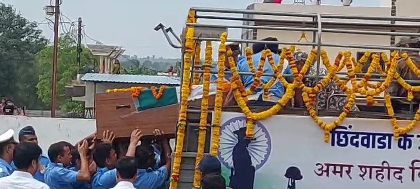 जम्मू कश्मीर के पुंछ में एयरफोर्स जवानों पर हुए आतंकी हमले में शहीद हुए छिंदवाड़ा की माटी के लाल विक्की पहाड़े का पार्थिव शरीर कुछ देर पहले इमलीखेड़ा एयरस्ट्रिप पर इंडियन एयर फोर्स के हेलीकॉप्टर से छिंदवाड़ा पहुंचा…