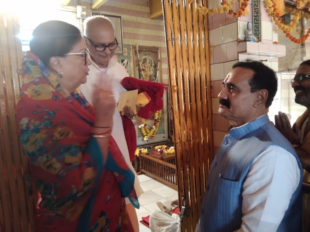 भोपाल। आज नवदुर्गा का आखिरी दिन है। पूरा देश महानवमी उत्सव मना रहा है। ऐसे में पूरे देश में प्रसिद्ध दतिया में मां पीतांबरा पीठ (Pitambara Peeth) में लाखों की संख्या में भक्त उमड़े। देवी मंदिर में भक्तों की भीड़ उमड़ रही है। श्रद्धालु माँ बगलामुखी देवी के दर्शन तो कर ही रहे हैं साथ ही साथ पीठ द्वारा आयोजित हवन में शामिल होकर आहुति भी दे रहे हैं। इसी श्रृंखला में राजस्थान की पूर्व मुख्यमंत्री श्रीमती वसुंधरा राजे (Vasundhara Raje Scindia) ने भी माँ पीताम्बरा मंदिर में कल रात को मंदिर पर ही पूजा अर्चना की। रात विश्राम करने के बाद आज सोमवार को वे एक अनुष्ठान में शामिल हुईं। आज सुबह माँ बगलामुखी पीठ के सामने आयोजित मंदिर के मुख्य हवन कुंड में आहुति दीं। आपको बता दें कि मंदिर में आज लगभग एक लाख श्रद्धालु पहुंचे हैं। राजस्थान की पूर्व मुख्यमंत्री के साथ ही मध्य प्रदेश के दतिया से भाजपा प्रत्याशी और गृहमंत्री डॉ. नरोत्तम मिश्रा ने भी देवी के दर्शन किए और वनखंडेश्वर महादेव का जल अभिषेक किया। उन्होंने वसुंधरा राजे से मुलाकात भी की। आपको बता दें कि राजस्थान में हो रहे विधानसभा चुनावों में वसुंधरा राजे सिंधिया को उनके वर्तमान विधान सभा सीट झालरापाटन से ही चुनावी मैदान में उतारा है। भाजपा की वर्तमान राष्ट्रीय उपाध्यक्ष एवं राजस्थान की पूर्व मुख्यमंत्री वसुंधरा राजे सिंधिया प्रदेश की झालरापाटन विधान सभा से वर्ष 2003, 2008, 2013 और 2018 में लगातार चार बार चुनाव जीत चुकी हैं।