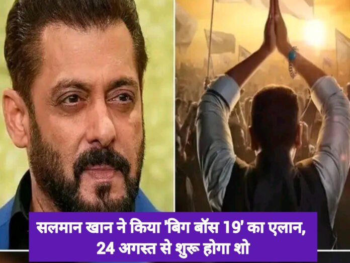 मुंबई: टीवी के सबसे चर्चित रियलिटी शो ‘बिग बॉस’ के फैन्स का इंतजार खत्म हो गया है। सुपरस्टार सलमान खान ने शो के 19वें सीजन का एलान कर दिया है, जो 24 अगस्त से शुरू होगा। इसके साथ ही, शो का प्रोमो भी जारी कर दिया गया है, जिसमें सलमान एक नेता के अंदाज में नजर आ रहे हैं।