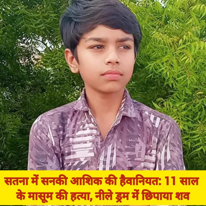 मध्यप्रदेश के सतना जिले के कोलगवां थाना क्षेत्र से एक दिल दहला देने वाली वारदात सामने आई है, जिसने पूरे इलाके में दहशत फैला दी है। यहां एक सनकी आशिक ने एकतरफा प्यार में पागल होकर 11 साल के मासूम बच्चे की बेरहमी से हत्या कर दी और शव को नीले ड्रम में छिपा दिया।जानकारी के मुताबिक, मृतक की पहचान शिवराज रजक (11 वर्ष), पिता रमेश रजक, निवासी नयागांव थाना सभापुर के रूप में हुई है। वह अपने माता-पिता के साथ बैंक कॉलोनी में संतोष विश्वकर्मा के यहां किराए से रह रहा था। घटना आज दोपहर करीब 3:30 बजे की बताई जा रही है।बताया जा रहा है कि आरोपी मथुरा रजक (45 वर्ष), निवासी बस स्टैंड सतना, मृतक की मां से जबरन शादी करना चाहता था। इसी बात को लेकर दोनों के बीच विवाद चल रहा था। घटना के दिन आरोपी महिला के घर पहुंचा, लेकिन महिला घर पर नहीं मिली। इसके बाद आरोपी ने गुस्से में आकर बच्चे पर हमला कर दिया और हंसिए से उसका गला रेत दिया, जिससे उसकी मौके पर ही मौत हो गई।वारदात को अंजाम देने के बाद आरोपी ने सबूत मिटाने के इरादे से बच्चे के शव को पास में रखे एक नीले ड्रम में बंद कर दिया और घर के बाहर ताला लगाकर फरार हो गया। घटना की सूचना मिलते ही कोलगवां थाना पुलिस मौके पर पहुंची, शव को कब्जे में लेकर पोस्टमार्टम के लिए भेजा और जांच शुरू कर दी।पुलिस ने आरोपी के खिलाफ हत्या का मामला दर्ज कर लिया है और उसकी तलाश जारी है। इस हृदयविदारक घटना के बाद पूरे क्षेत्र में भय और आक्रोश का माहौल है।मामले में शिवेश सिंह बघेल ने बताया कि पुलिस हर पहलू से जांच कर रही है और जल्द ही आरोपी को गिरफ्तार कर लिया जाएगा।