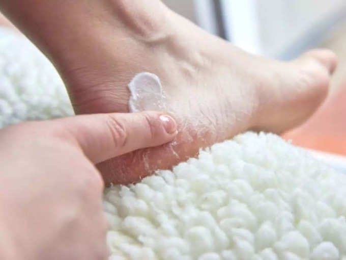 यदि आप सूखी, फटी एड़ी से पीड़ित हैं, तो यह लगातार ठंडी, शुष्क हवा के संपर्क में रहने से हो सकता है जो आपकी त्वचा को शुष्क कर देता है। इसे ठीक करने के लिए अपने पैरों को मॉइस्चराइज करके मोजा पहनें। यह नमी को बनाए रखने में मदद करता है, सोते समय त्वचा की कोमलता में सुधार करता है।