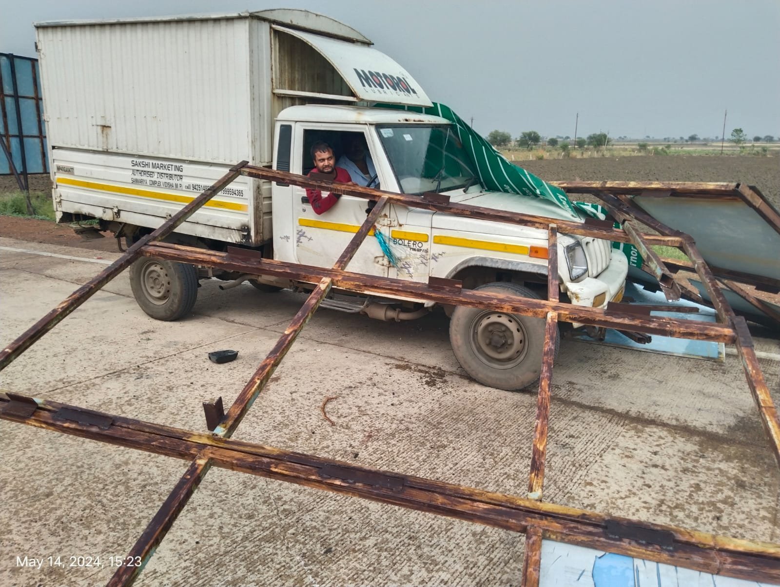 शिवपुरी- कोलारस थाना क्षेत्र के पूरनखेड़ी टोल प्लाजा पर तेज आंधी ने टोल प्लाजा पर कहर बरपा दिया। यहां तेज आंधी के चलते टोल प्लाजा पर लगे बोर्ड उखड़कर सड़क पर गिर गए।इस दौरान एक लोडिंग वाहन भी वोर्ड की चपेट में आ गया। वहीँ टोल प्लाजा के टीसी काउंटर पर तैनात टोल कर्मी के ऊपर कांच उखड़कर गिर गया जिससे उसने भागकर अपनी जान बचाई है जिससे टोलकर्मी घायल हो गया। घायल को उपचार के लिए टोल एंबुलेंस की मदद से कोलारस के स्वास्थ्य केंद्र में भर्ती कराया गया है। बता दें कि टोल कर्मी पर कांच गिरते हुए का लाइव वीडियो भी सामने आया है। बता दे तेज आंधी के चलते वाहनों के टोल काटने के लिए काउण्टर पर बैठे टीसी राहुल शर्मा के ऊपर केबिन में लगा बड़ा शीशे का टुकड़ा उखड़कर गिर पड़ा। शीशा लगने से राहुल शर्मा के सिर में और हाथ में चोंटे आई है। घायल हुए राहुल शर्मा को उपचार के लिए कोलारस के स्यास्थ्य केंद्र में भर्ती कराया गया हैं।बता दे जिले में आज दोपहर से मौसम बिगड़ गया था। इसका सबसे ज्यादा असर कोलारस विधानसभा क्षेत्र में देखने को मिला है। इसी क्रम में आज मंगलवार की शाम को पूरनखेड़ी टोलप्लाजा को तेज आंधी ने अपनी चपेट में ले लिया था। हवा की रफ़्तार इतनी तेज थी कि टोल प्लाजा पर लगे बड़े बड़े बोर्ड जमीदोज हो गए। इस दौरान बोर्ड की चपेट में एक लोडिंग वाहन भी आ गया था। गनीमत रही लोडिंग वाहन में सवार लोग बाल बाल बच गए। जबकि लोडिंग वाहन छतिग्रस्त हो गया।