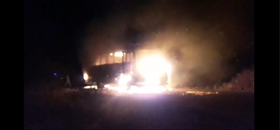बैतूल मतदान दल को वापस ला रही बस में आग लगी।
