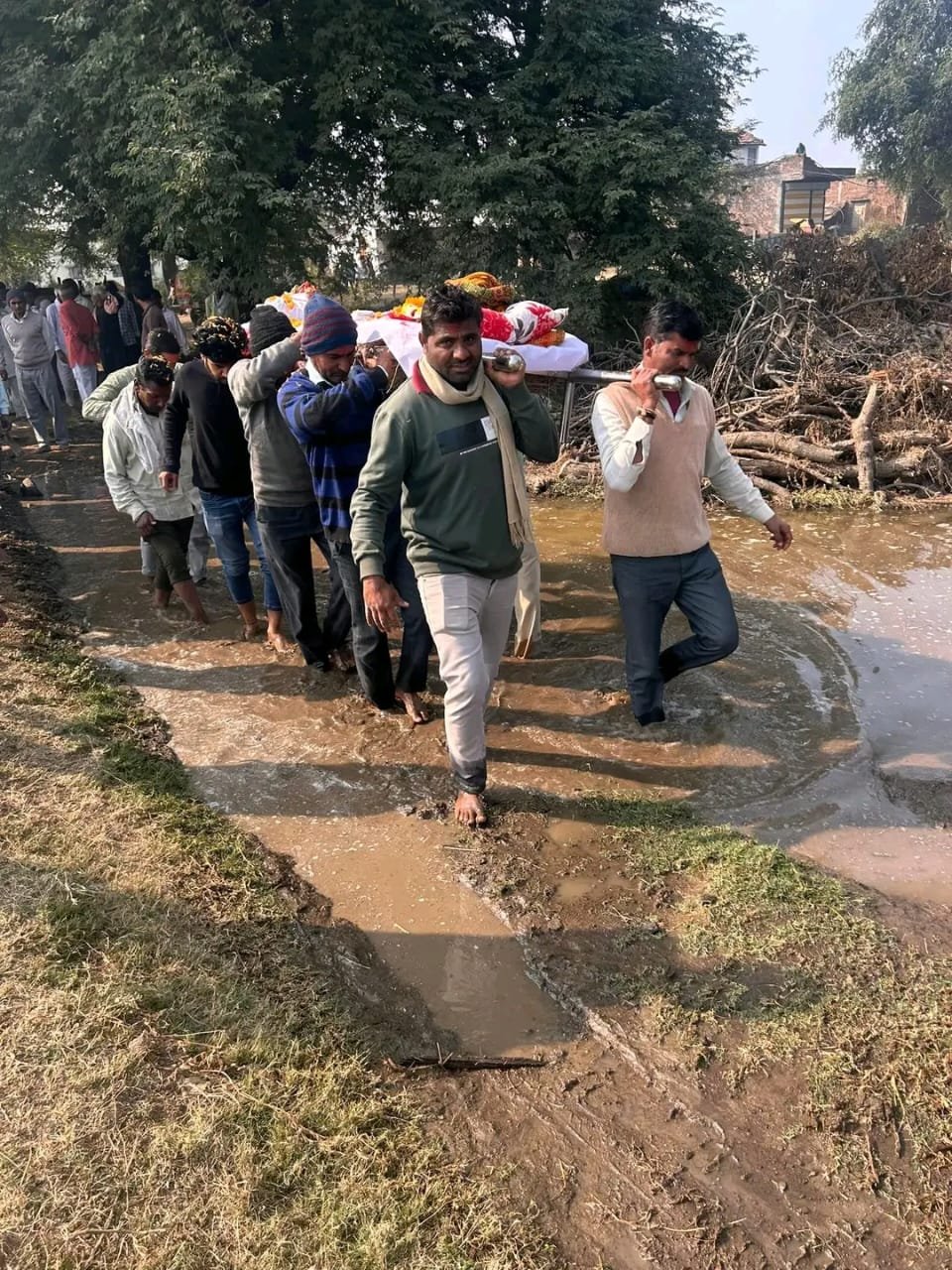 जीवन के अंतिम सफर में पानी और कीचड़ से भरी राह