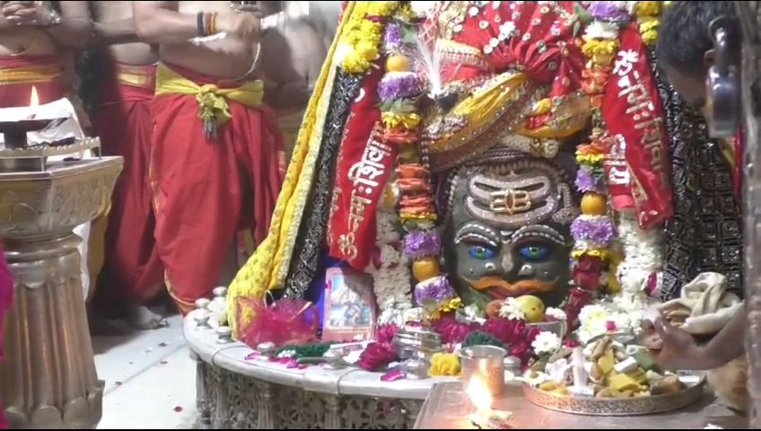 महाशिवरात्रि पर आज भक्तों को आशीष देने डेढ़ घंटे पहले जागे बाबा महाकालप्रथम घंटाल बजाकर अर्पित किया गया हरिओम का जल, फिर श्रंगार कर चढ़ाई गई भस्म।