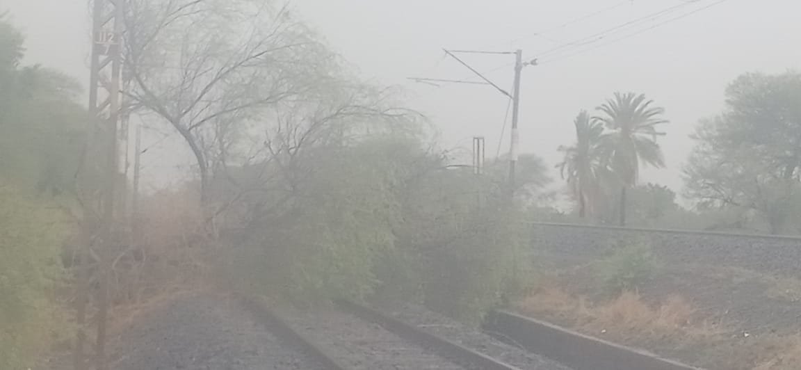 शाजापुर: शाजापुर जिले में शुक्रवार को आई तेज आंधी और बारिश के कारण जनजीवन प्रभावित हुआ। इसी दौरान, भोपाल से दाहोद जा रही ट्रेन संख्या 19340 पुराना दशहरा मैदान के पास आंधी की चपेट में आ गई। रेलवे ट्रैक पर एक पेड़ गिर जाने के कारण ट्रेन को लगभग 10 मिनट तक रोकना पड़ा।जानकारी के अनुसार, आंधी-तूफान के चलते ड्राइवर ने सूझबूझ दिखाते हुए ट्रेन रोक दी, जिससे यात्रियों को थोड़ी देर के लिए परेशानी का सामना करना पड़ा।