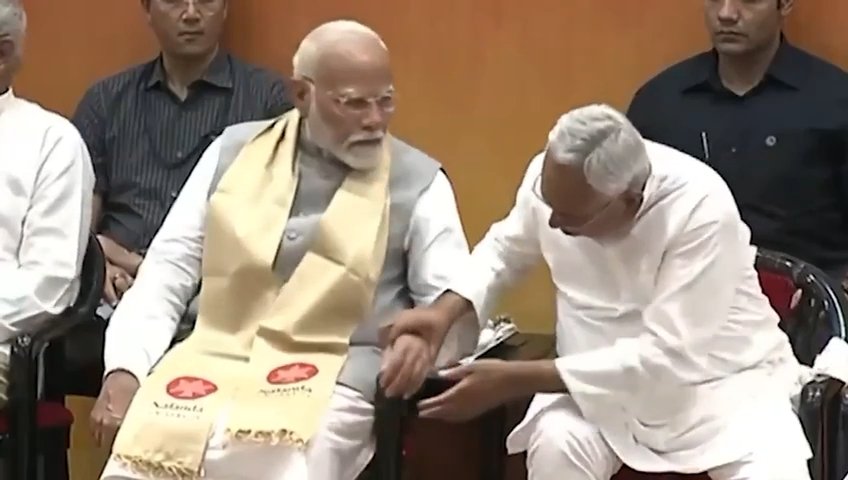 प्रधानमंत्री का हाथ पकड़ने का नीतीश कुमार का वीडियो हो रहा वायरल।