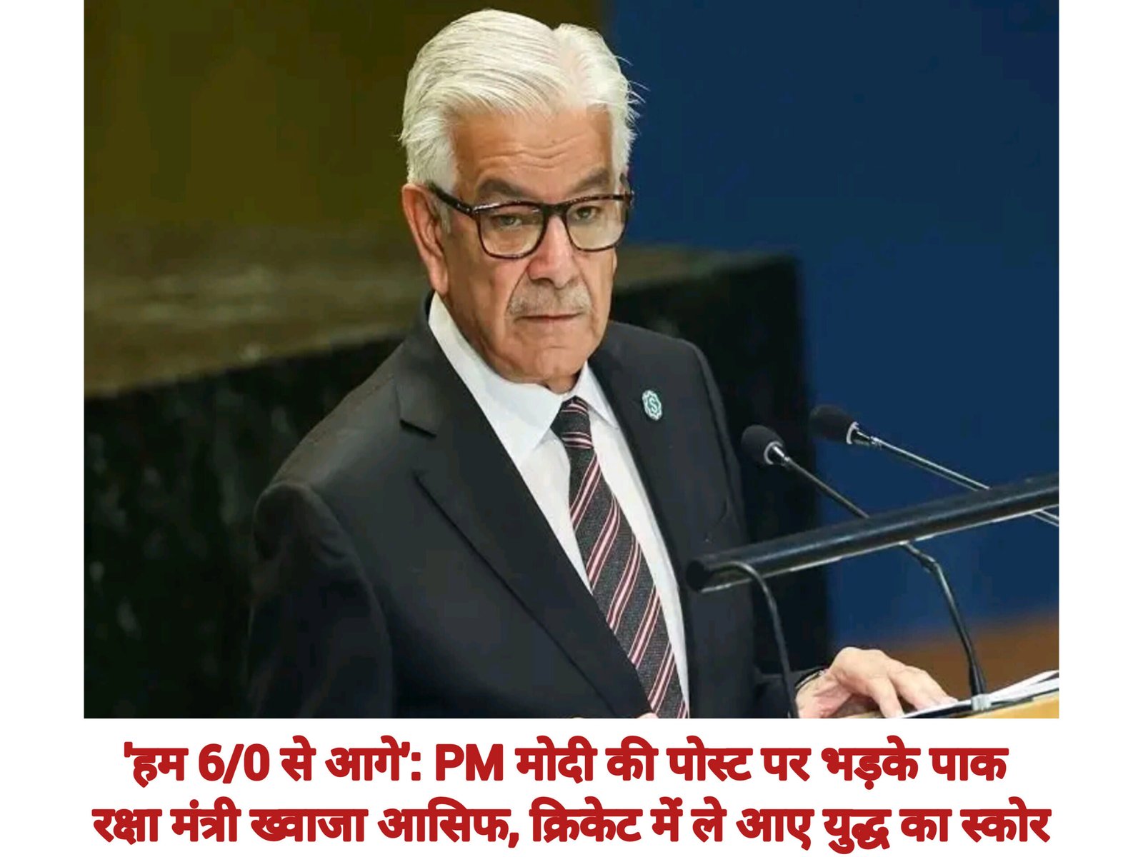 उन्होंने क्रिकेट को छोड़कर सीधे युद्ध के स्कोर का उल्लेख कर दिया।PM मोदी की पोस्ट पर आसिफ का गुस्साख्वाजा आसिफ ने सोशल मीडिया पर PM मोदी को निशाना बनाते हुए लिखा कि मोदी क्रिकेट की संस्कृति और भावना को नष्ट कर रहे हैं।
